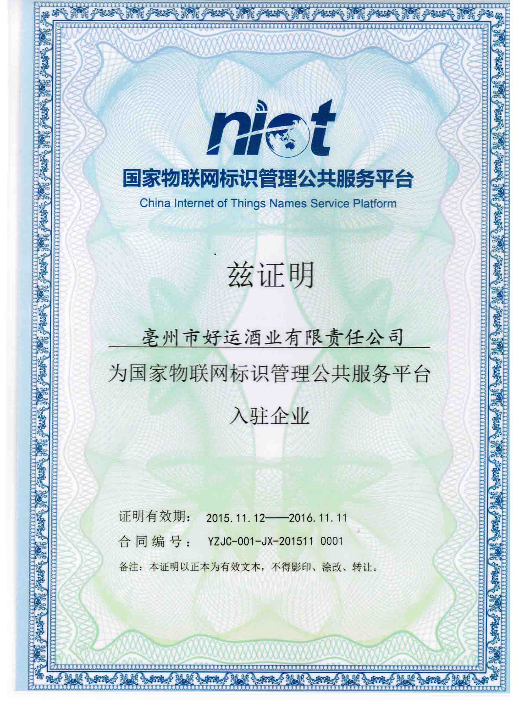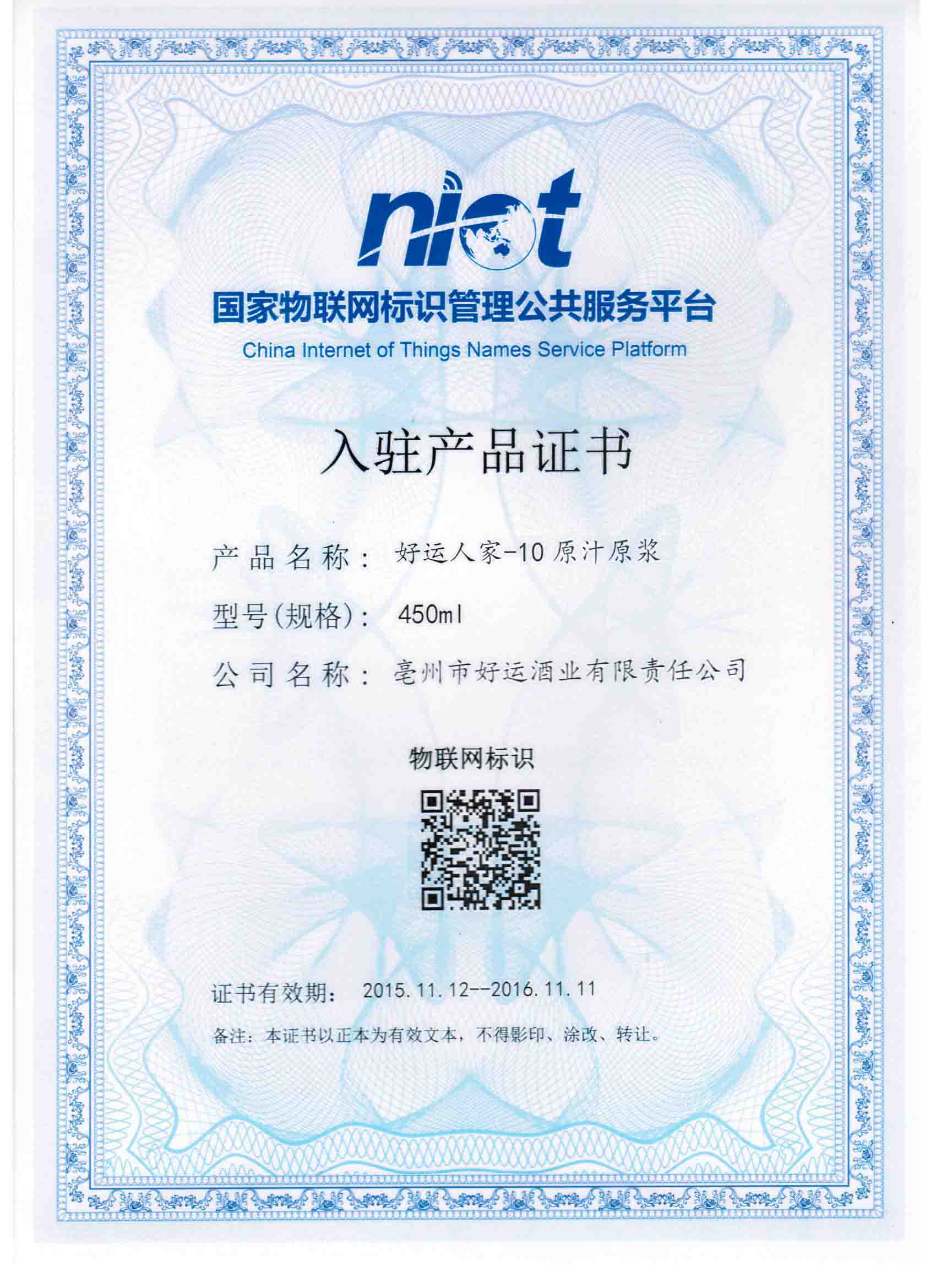 (好運人家—10年原汁原漿)入駐國家物聯(lián)網(wǎng)