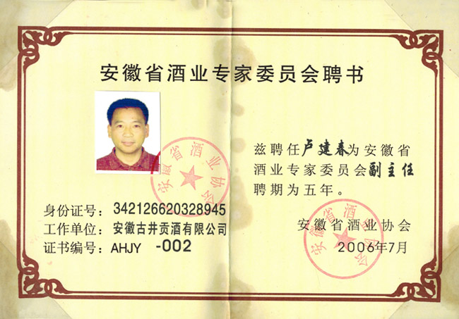 安徽省酒業(yè)專家委員會(huì)聘書