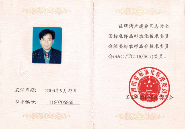 中國白酒國家評(píng)委證書