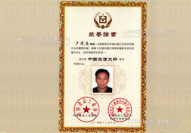中國白酒大師稱號(hào)
