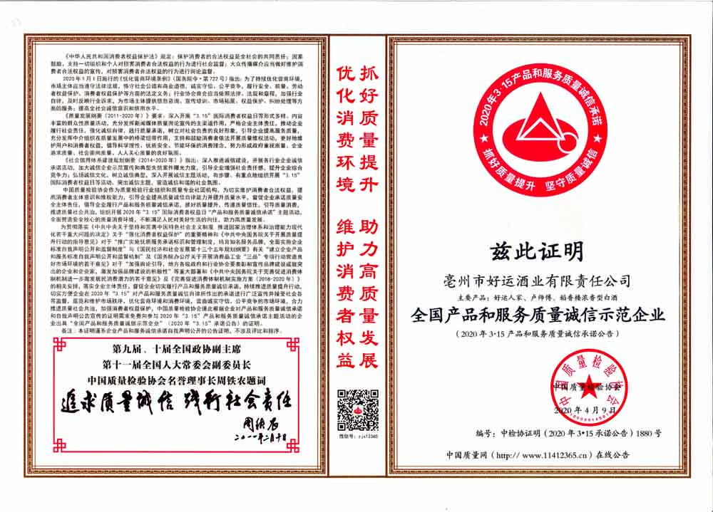 全國產(chǎn)品和服務質(zhì)量誠信示范企業(yè)