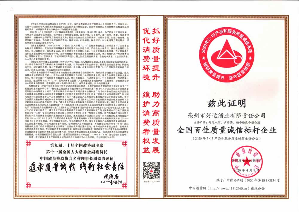 全國百佳質(zhì)量誠信標桿企業(yè)
