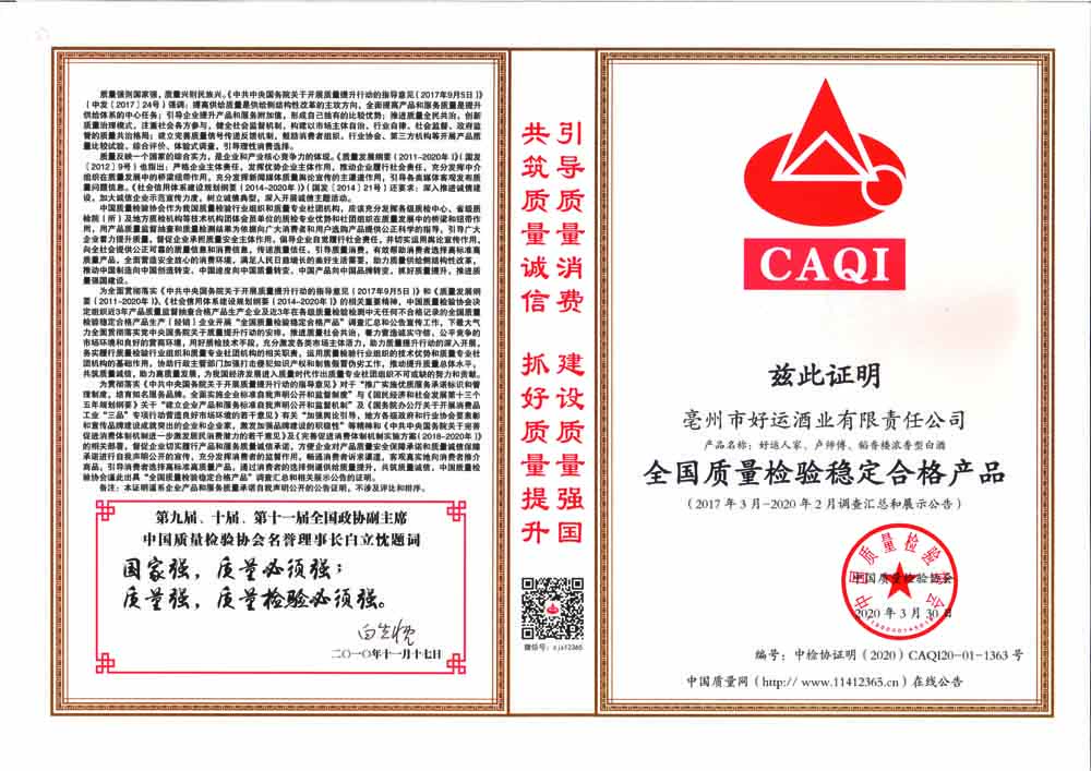 全國質(zhì)量檢驗穩(wěn)定產(chǎn)品